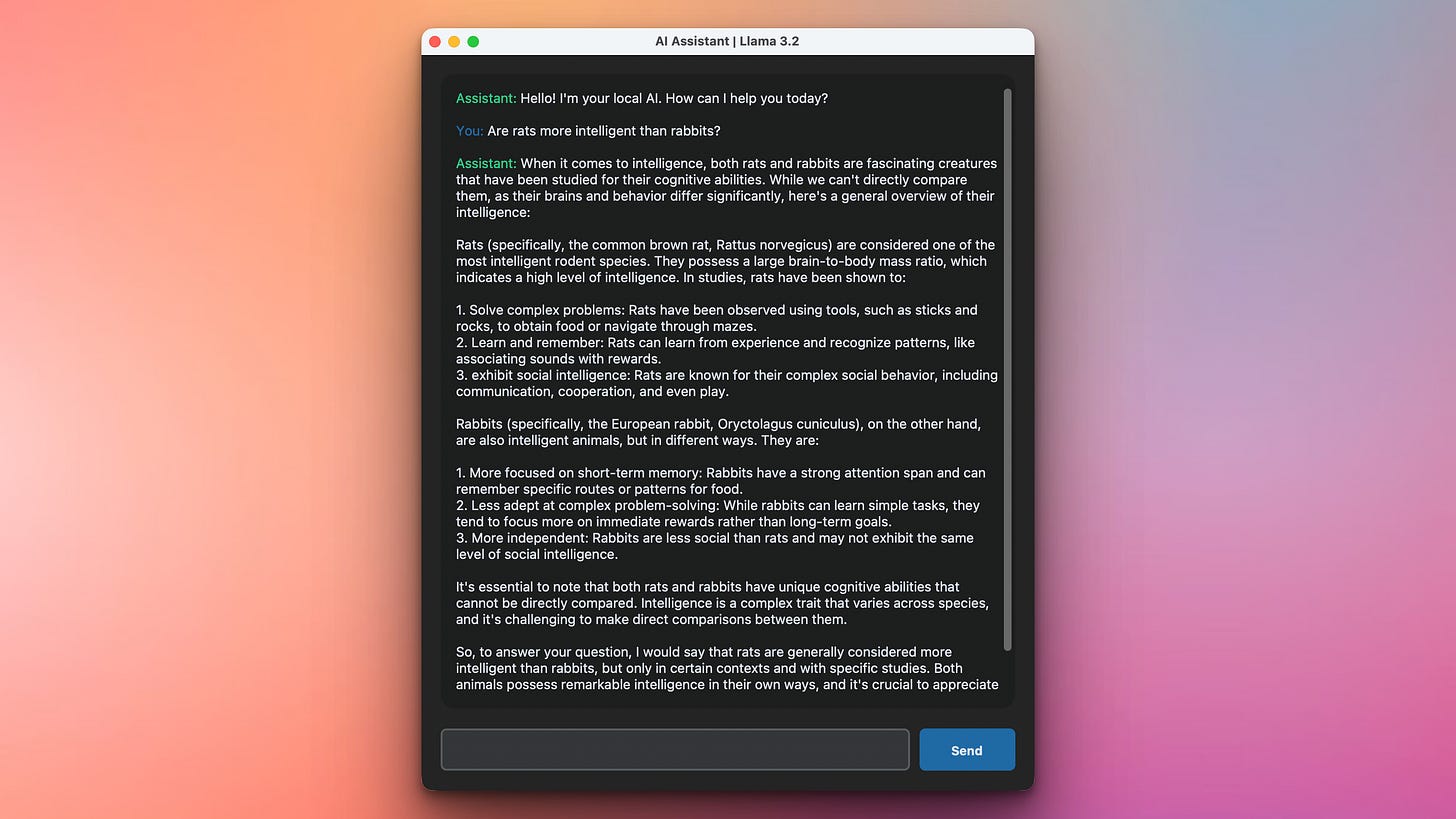 This is it — a private, offline ChatGPT-style assistant powered by Meta’s Llama 3.2 1B model. No API keys, no cloud, no costs, completely yours!