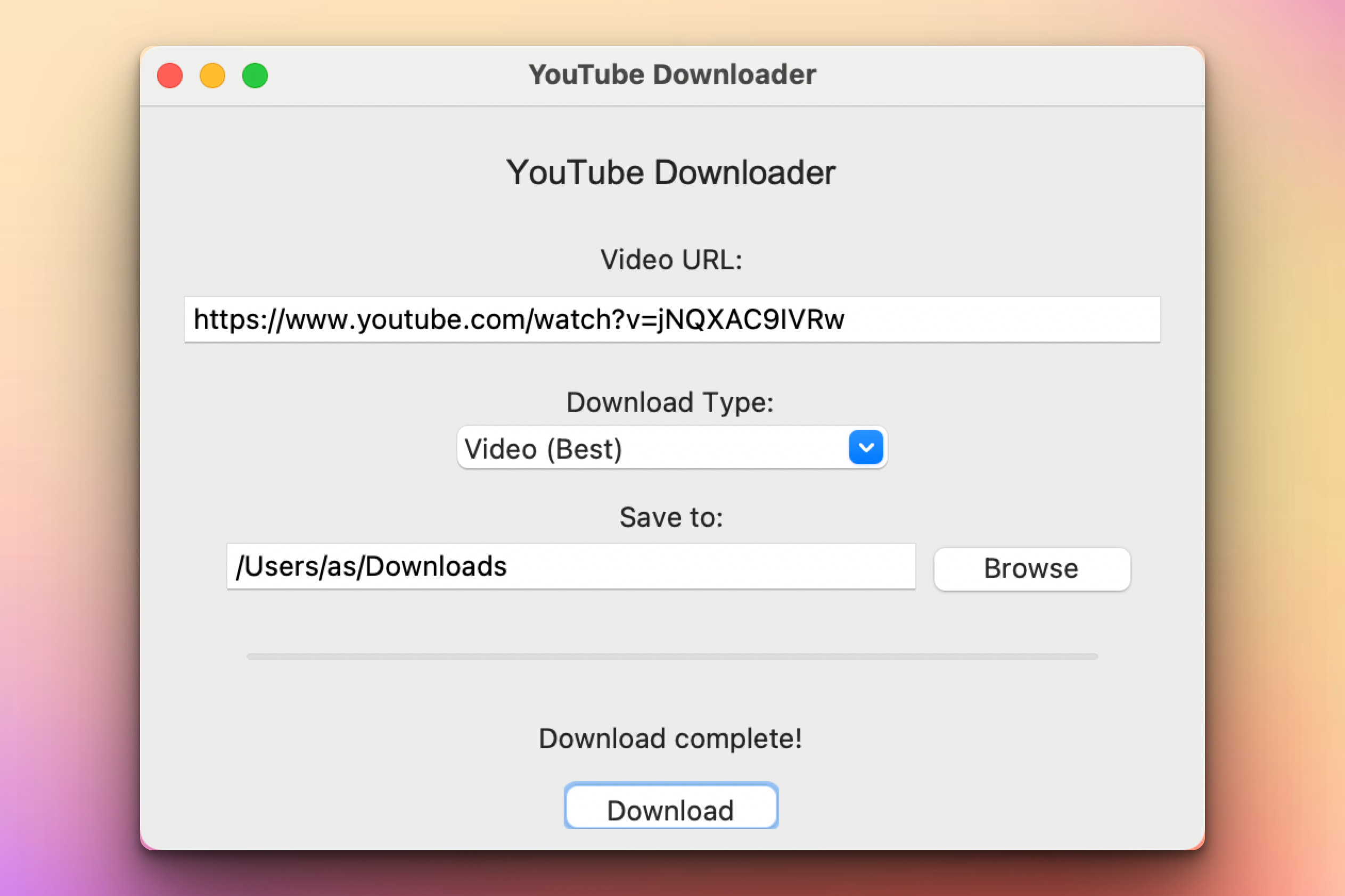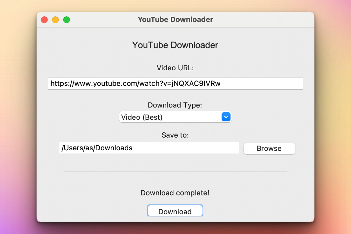 Your task for today is to create a desktop YouTube video downloader application with a graphical interface. This project introduces you to GUI development and video downloading.