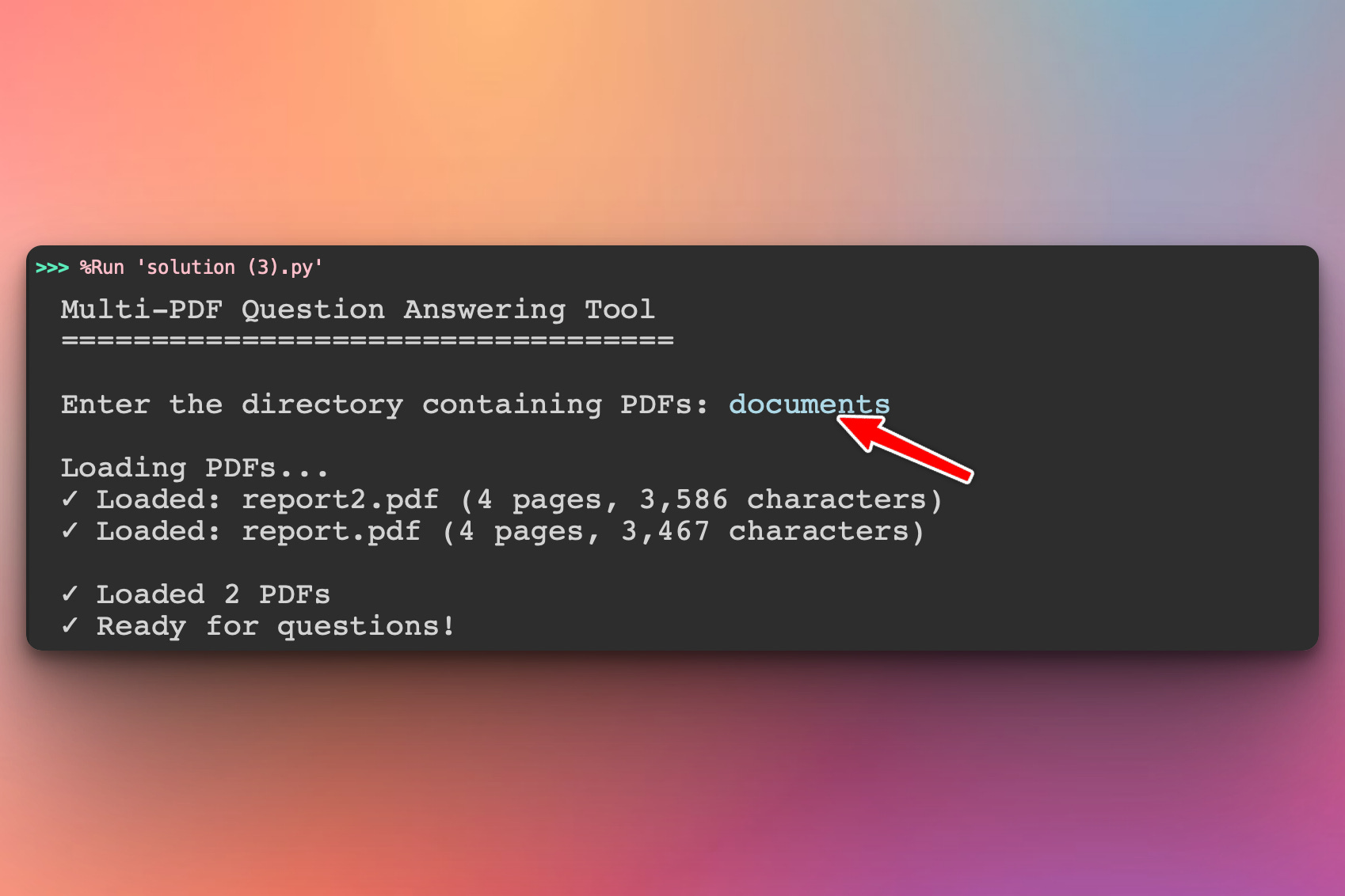 When the user runs the program, they are asked to enter the directory where the PDF files are located (e.g., documents):