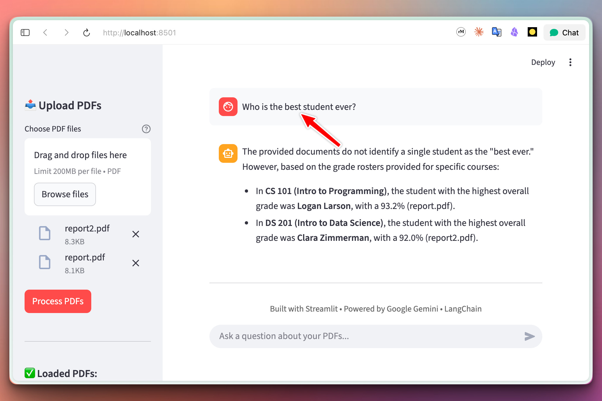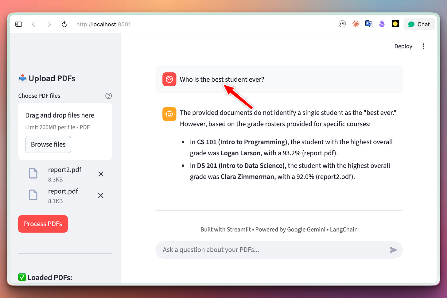 This week, we build a smart PDF analyzer powered by LangChain and Google’s Gemini AI that lets you upload PDFs and ask questions about them.