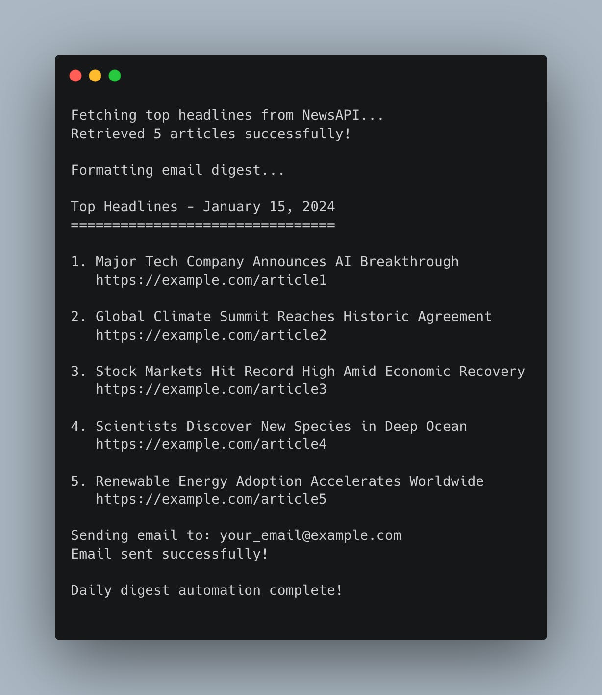 Your task for today is to create an automated pipeline that fetches top news headlines every day, formats them into a clean digest, and emails them to you automatically — a perfect example of “set it and forget it” automation that runs in the cloud.