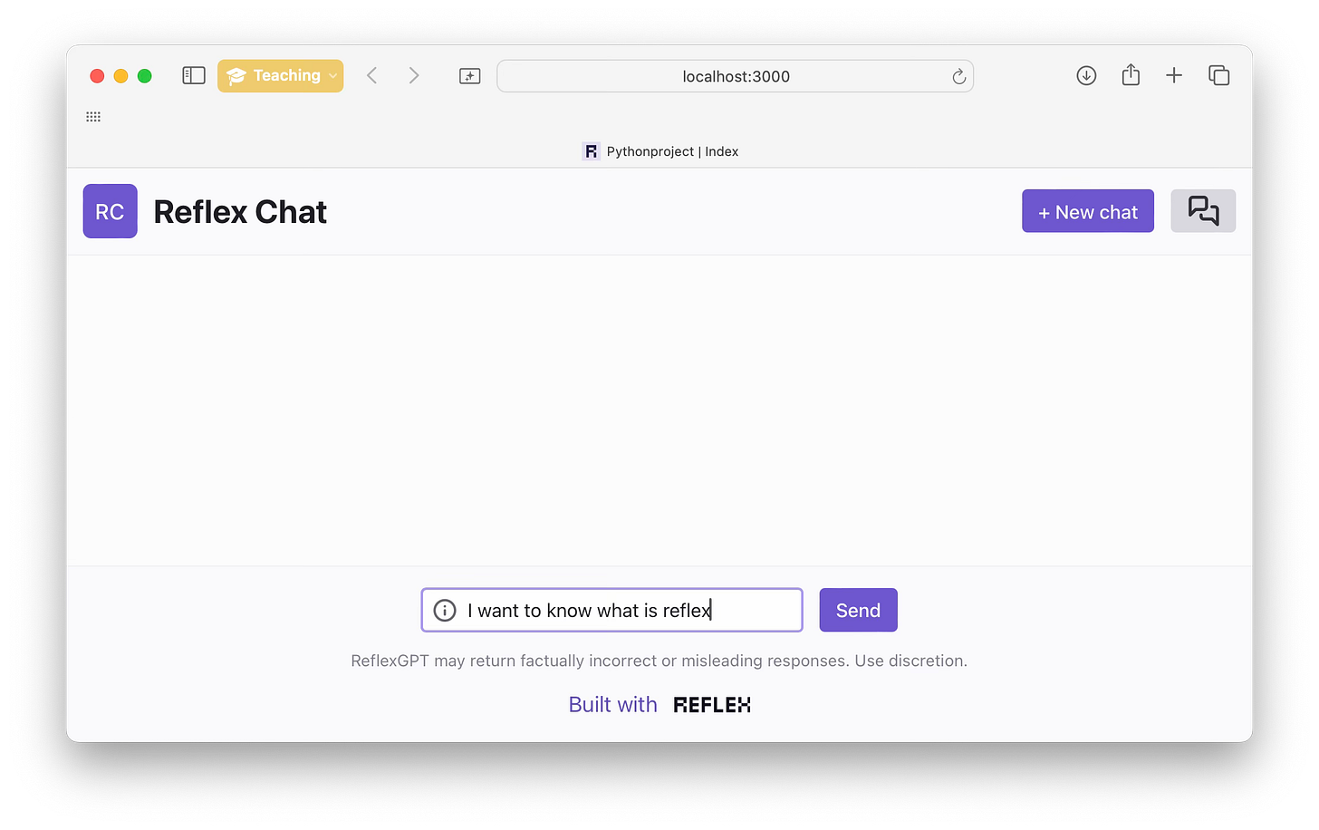 Your task for this project is to build a ChatGPT clone using the Reflex fullstack web framework. Here is how the app we build in the solution link will look like: