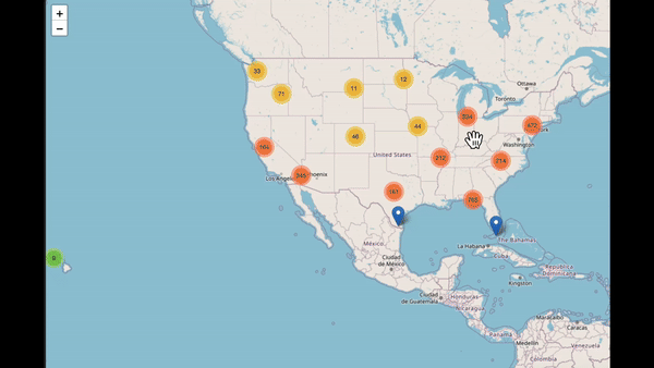 Your program should generate an HTML file. The HTML file should show the following interactive map when opened in a browser: