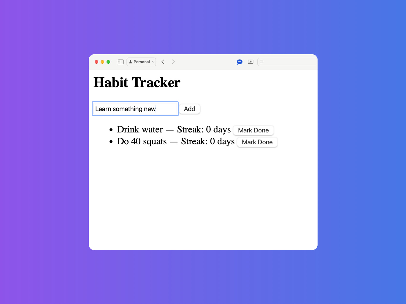 class with methods to add habits, mark them as done, and view streaks.Build a Flask web app with routes to: