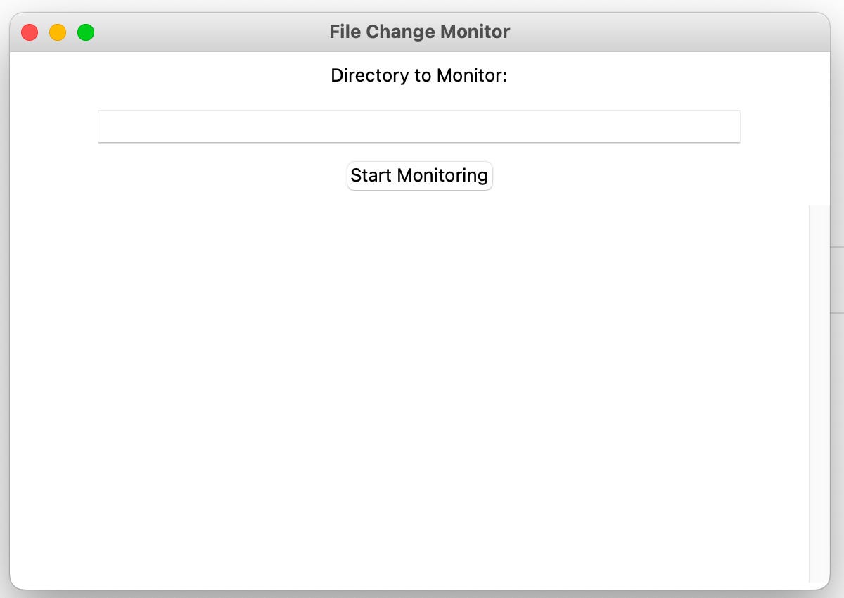 This project will monitor changes in a specified directory and display them in real-time using a simple GUI built with Tkinter. You can use this to track modifications like file creation, deletion, or modification in any folder. This could be useful for applications like monitoring log files or watching over a directory during development.