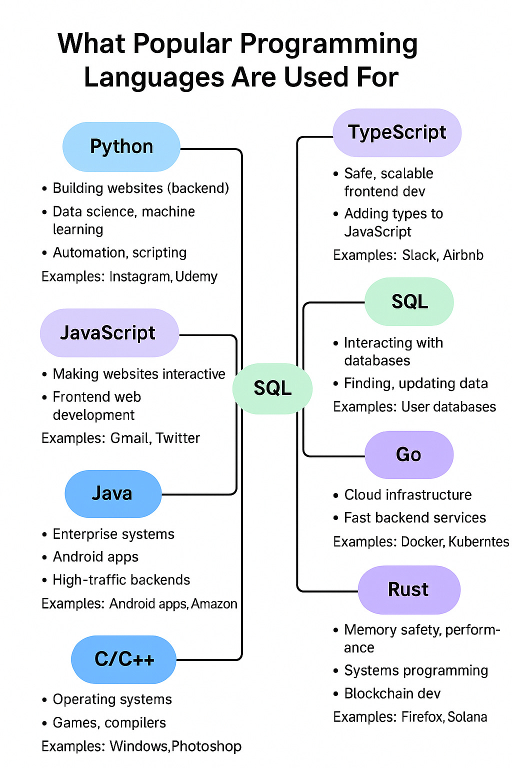 If you're just getting started, Python is an excellent entry point — but the more you understand how the other languages fit in, the more capable you'll become across real-world systems.